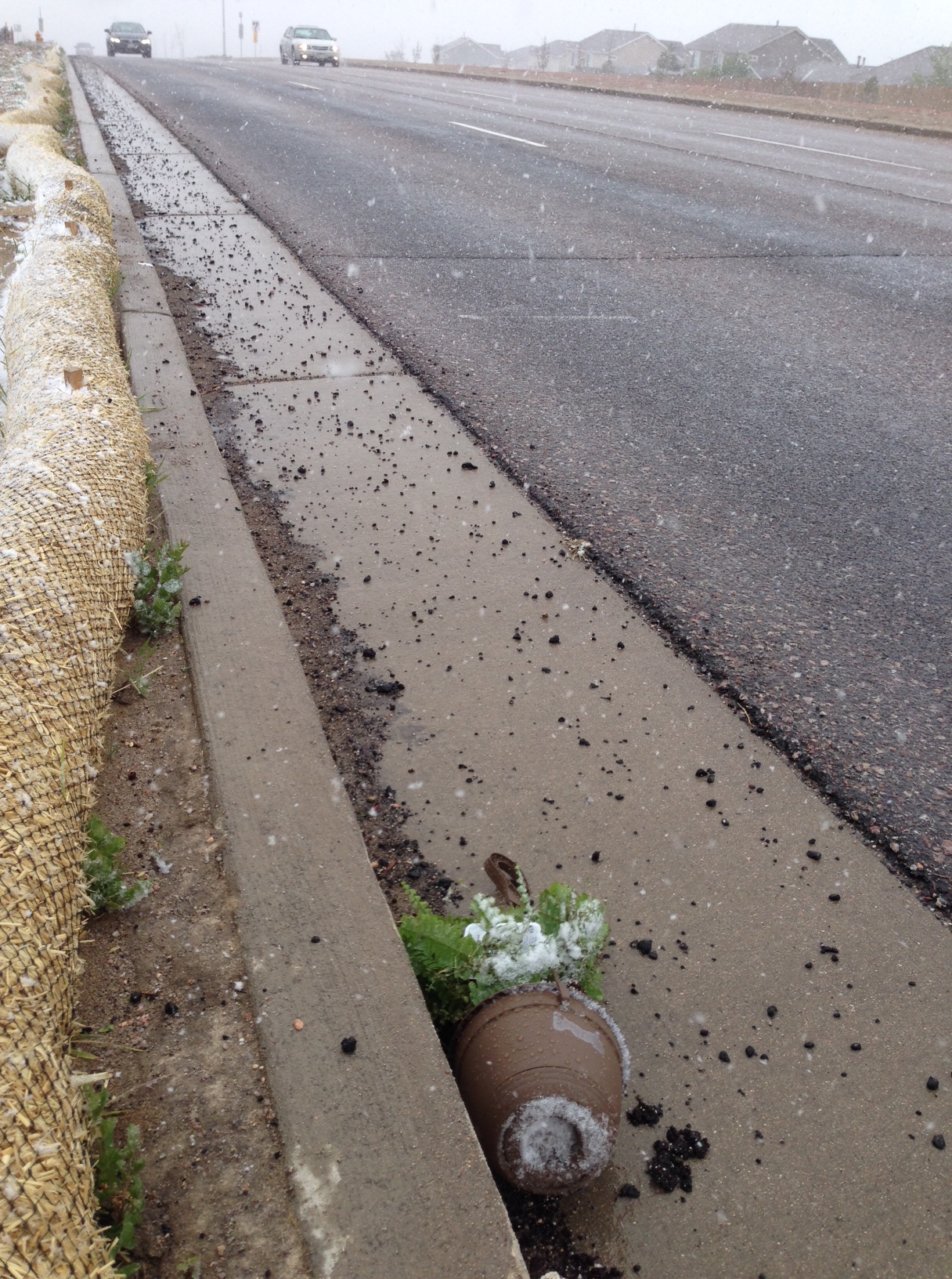 Yes, that’s how the plant ended up in the street. Yes, he chucked it out the back door, clearing 30 feet of back yard and where it landed in the gutter. Yes, there were choice words from The Boy’s mouth in the loudest reaction I’ve seen from him in the last year.