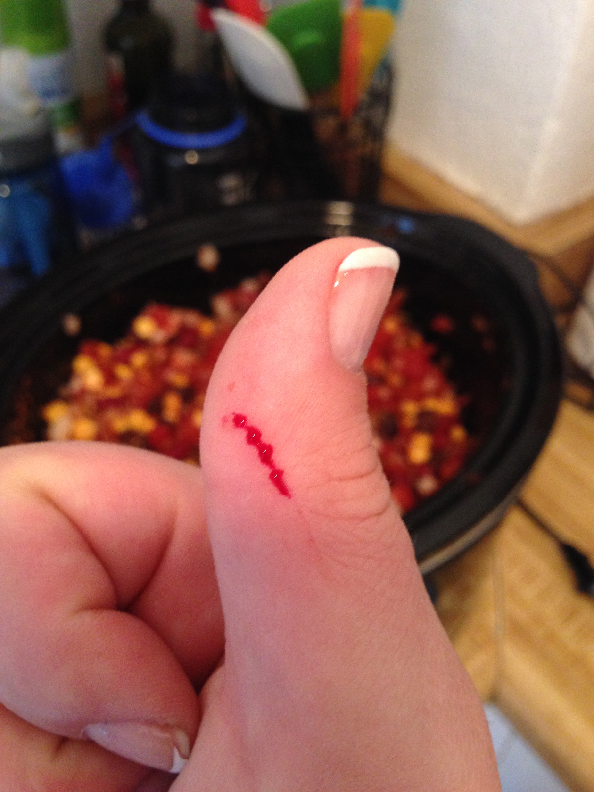 Here’s the trouble with hurting yourself in the kitchen. You’re working with food and suddenly you’re bleeding everywhere. It’s just a messy scenario. So don’t do it. Go ahead and just be careful with freshly opened cans and save yourself the frantic search for the Disney Princess bandaids. You’re welcome in advance!